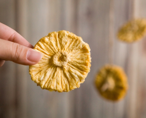 整顆鳳梨新鮮切片,堅持低溫風乾技法,最能保留鳳梨營養,泡茶、入菜、當零嘴,變化多多。